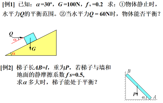 考虑摩擦时的平衡问题,一般是对临界状态求解,这时可列出补充方程。其它解法与平面任意力系相同。只是平衡常是一个范围。