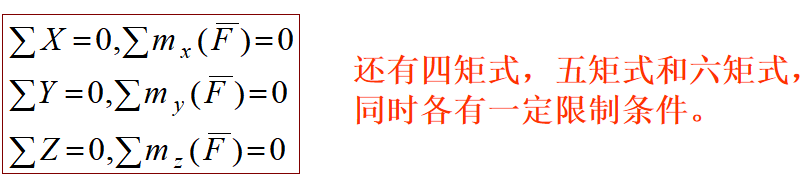 观察物体在空间的六种(沿三轴移动和绕三轴转动)可能的运动中,有哪几种运动被约束所阻碍,有阻碍就有约束反力。阻碍移动为反力,阻碍转动为反力偶。