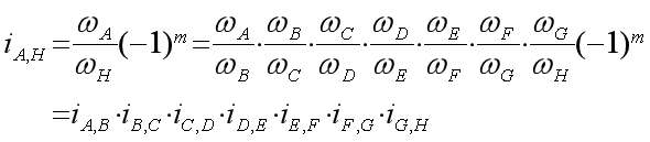 其中m代表外啮合的个数;负号表示最后一个轮转向与第一个轮转向相反。