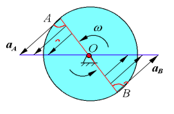 ②各点的全加速度方向与各点转动半径夹角q 都一致, 且小于90o 。