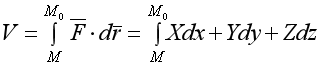 在势力场中, 质点从位置M 运动到任选位置M0, 有势力所作的功称为质点在位置M 相对于位置M0的势能,用V 表示。