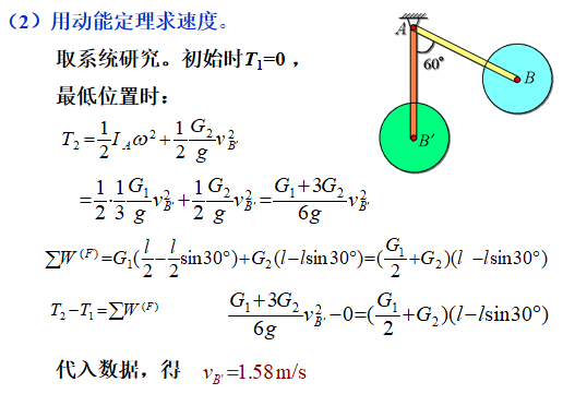 该题也可用相对质心动量矩守恒定理+动能定理+动量矩定理+质心运动定理求解。也可用对积分形式的动能定理求导计算,但要注意需取杆AB在一般位置进行分析.