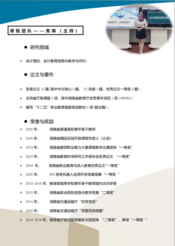 “德技双馨”高素质会计信息化课程团队成员介绍