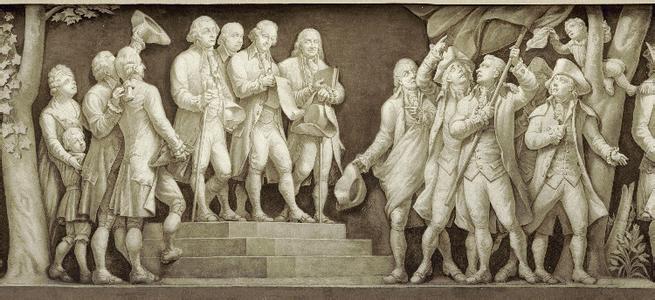 John Adams(约翰·亚当斯,前美国总统) was a leader in pushing for independence, which was passed on July 2 with no opposing vote cast. A committee of five had already drafted the formal declaration, to be ready when Congress voted on independence. The term "Declaration of Independence" is not used in the document itself.