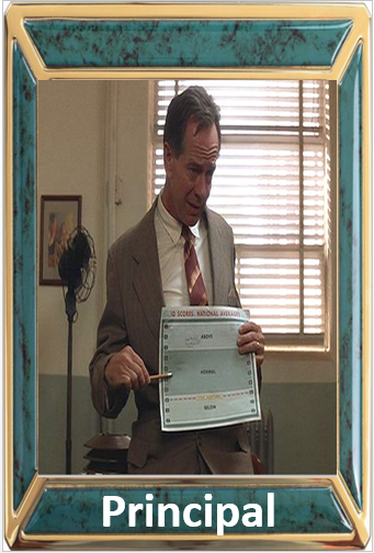 ★ Principal 校长 The principal told Forrest’s mother that Forrest Gump is a low IQ of only 75 child.