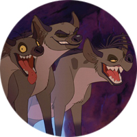 These laughing hyenas haunt about the elephant graveyard. They are Scar's stooges. They helped him with his plot to kill the King Mufasa and were ordered to kill Simba,but to no avail. Shenzi means "barbarous, savage" in Swahili. Shenziis the female, and also takes the role of "leader." Banzai is the male and also known as "cactus butt." Ed is the wackiest of the hyenas.