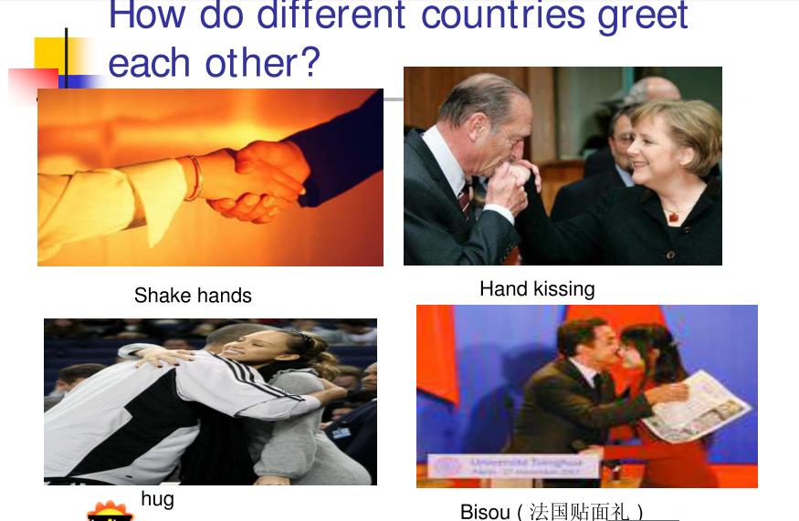 Look at the following pictures and talk about the different customs between China and other countries.