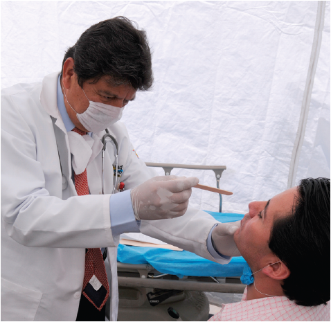 B. Doctors help their patients get well and tell them how to stay healthy. This doctor is helping a patient in Mexico City, Mexico.