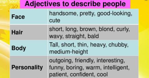 Activity 2: Describe one of your classmates / teachers to your partner according to the following four features and let him /her guess who she / he is.