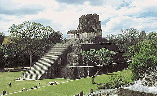 The Temple of the Great Jaguar at Tikal, a historical site in modern-day Guatemala, was part of the ancient Mayan civilization. Tikal was a very large city with several tall pyramids.