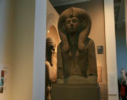 The ancient Egyptians lived mostly along the Nile River in north Africa in what is now Egypt. This wooden statue was found in the tomb of Amenhotep II, the 7th pharaoh, or king of the 18th dynasty of Egypt.