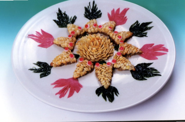 3. Pay attention to the correct control of fire and oil temperature. The whole process of explosion basically uses fire, especially the hot water pot. There should be more water in the water pot, the fire should be large, and it should keep boiling violently. In this way, the materials put in the leaky spoon will shrink once they are scalded in the water, which will burst out the patterns made, and also heat the raw materials to half cooked, creating conditions for the subsequent frying to make the dishes mature quickly.