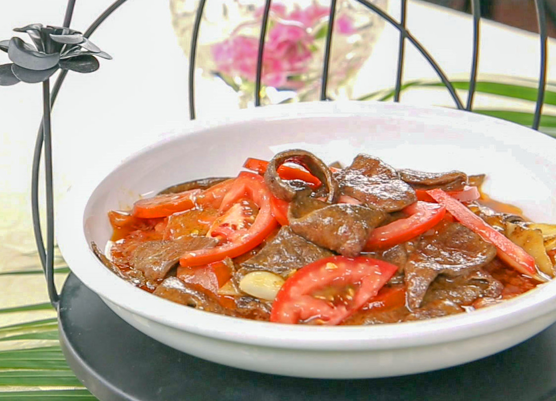广西菜“韭黄炒鸡丝”“丝瓜炒田鸡”,广东菜“生炒脆骨”“生炒菜心”,山东菜“生炒猪耳”(见图1-4-1),江苏菜“生炒蝴蝶片”,四川菜“鲜番茄炒猪肝”,湖南菜“生炒螺丝椒”,重庆菜“生炒鳝段”等。