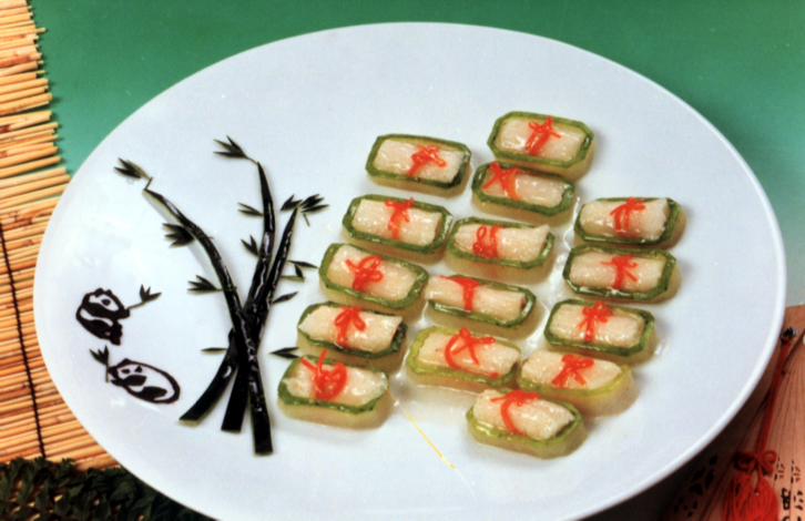 广东菜“西柠软煎鸡”(见图1-8-1)、“柠汁煎鸭脯”“煎虾仁蛋瓤”,北京菜“黄油煎鳜鱼片”“香煎素鸡肝卷”,江苏菜“干煎鳜鱼柳”,宁夏菜“煎烹羊肉”,天津菜“煎烹大明虾”,四川菜“大蒜焖鲶鱼”等。