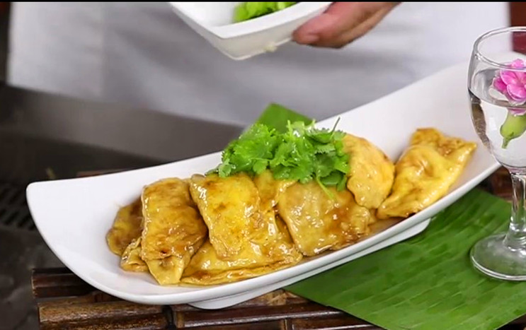 在炒锅或者平底煎锅中放少量油,将原料铺平贴放在锅中,小火加热至表面金色,翻一面,再加热至表面金黄色,这种方法叫煎法。煎锅的原料,在煎之前一般还需要经过调味或挂糊。有的在煎熟以后不需另用调味品烹调,食时再蘸调味品。煎时要不断晃锅或用手铲翻动,使其受热均匀两面一致,多呈金黄色或表皮酥脆。成品色泽金黄、香脆酥松、软香嫩滑原汁原味,诱人食欲。