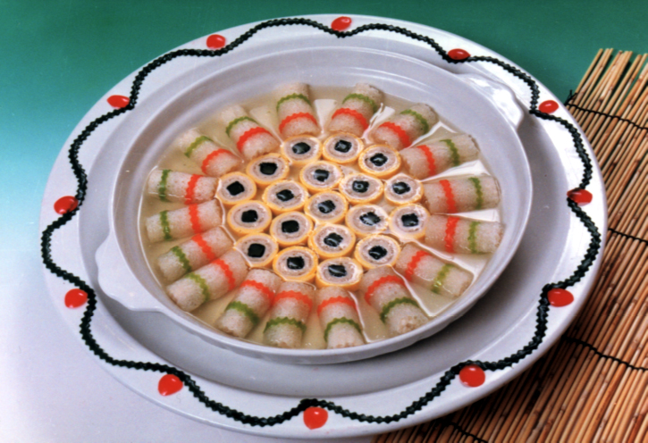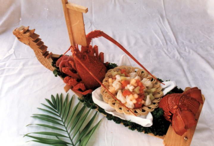 Guangdong cuisine "Weihua seafood salad roll" (see figure 2-3-1), Jiangsu cuisine "oyster sauce paper wrapped chicken", Sichuan cuisine "Tan's paper wrapped fish" (see figure 2-3-2), Hunan cuisine "paper wrapped chicken", Beijing cuisine "Lantern chicken" and "three kinds of paper wrapped chicken", etc.