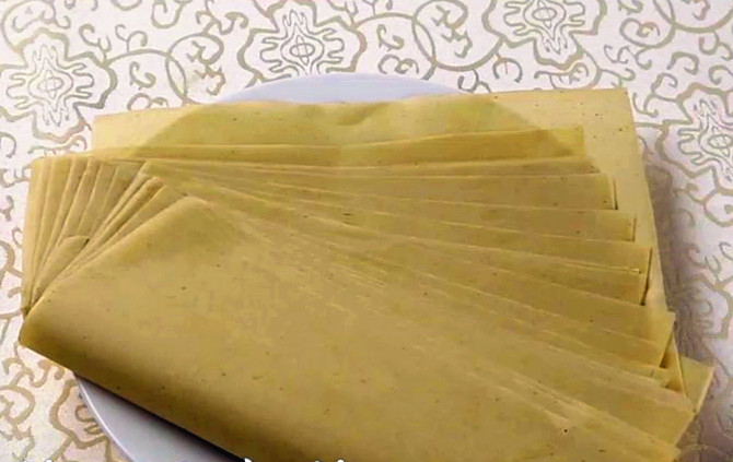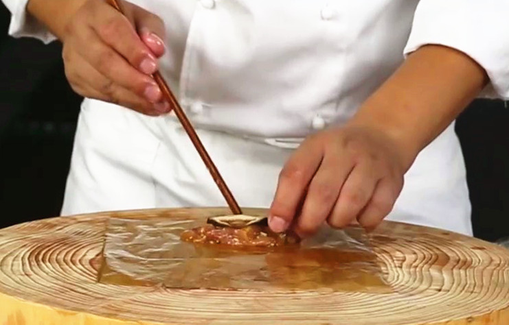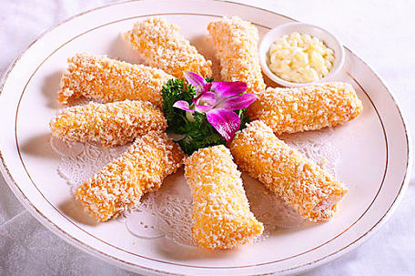 The cooking technique of frying the raw materials wrapped in jade buckle paper into a hot oil pot and frying them into cooked vegetables is called paper wrapping frying. The dishes made by paper wrapping and frying have the characteristics of beautiful and neat, fresh and tender texture and strong flavor.