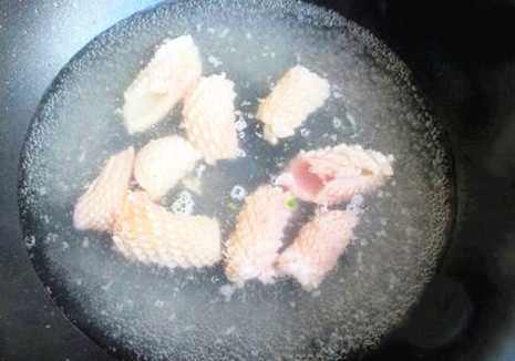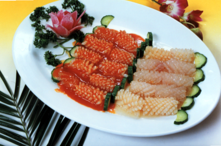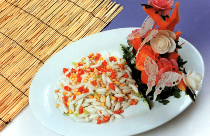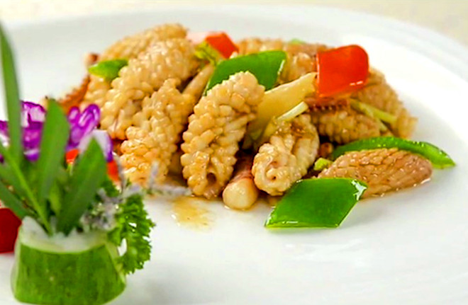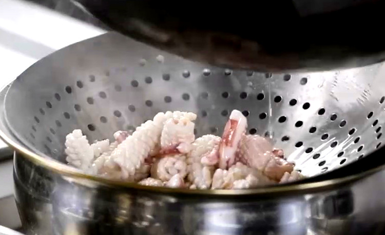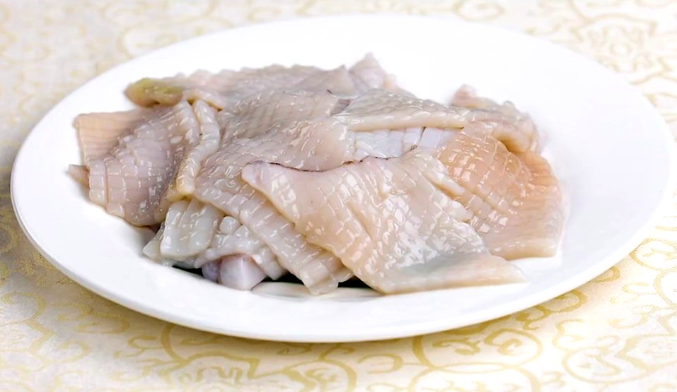 三类是肉料含水分多而口感要求爽脆的原料,如肚仁、虾球这类原料的共同特点就是原料内含有相当多的水分,在处理这类原料,泡油时应采用高油温去处理,这样既可通过高油温的作用使肉料表层迅速收缩紧闭、快速至熟,解决了原料本身含水分多,又要求达到口感爽脆两者之间的矛盾,因此处理这类原料采用高油温是最恰当的方怯。