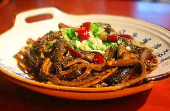 广东菜“油泡生鱼球”“油泡土鱿”,四川菜“油泡鳝段”(见图2-6-1)“泡椒猪肝”,山东菜“油泡双脆”“酱爆鸡丁”,浙江菜“龙井虾仁”“虾爆鳝”,广西菜“油泡墨鱼花”等。
