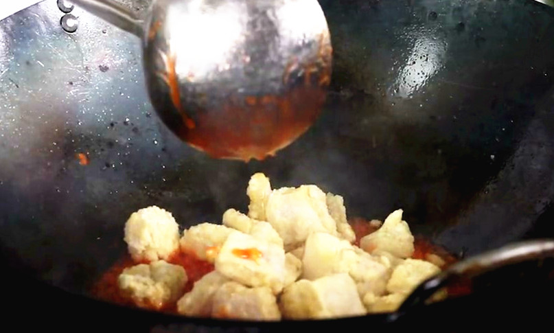 4. Juice wrapping treatment. Try to make the re frying and making sauce at the same time, or shorten the time interval between them, so as to maintain the state of hot material and hot brine, so that the sauce can penetrate into the interior of the raw materials and the dishes will taste. Hot materials and cold sauce or hot materials and cold sauce can not achieve the effect of crispy fried dishes.