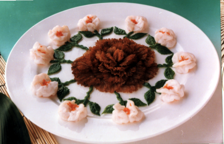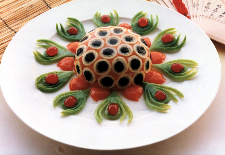 4.五彩烩:以五种(也可用多种,多色)原料本身的色彩加汤汁进行烩制成菜。