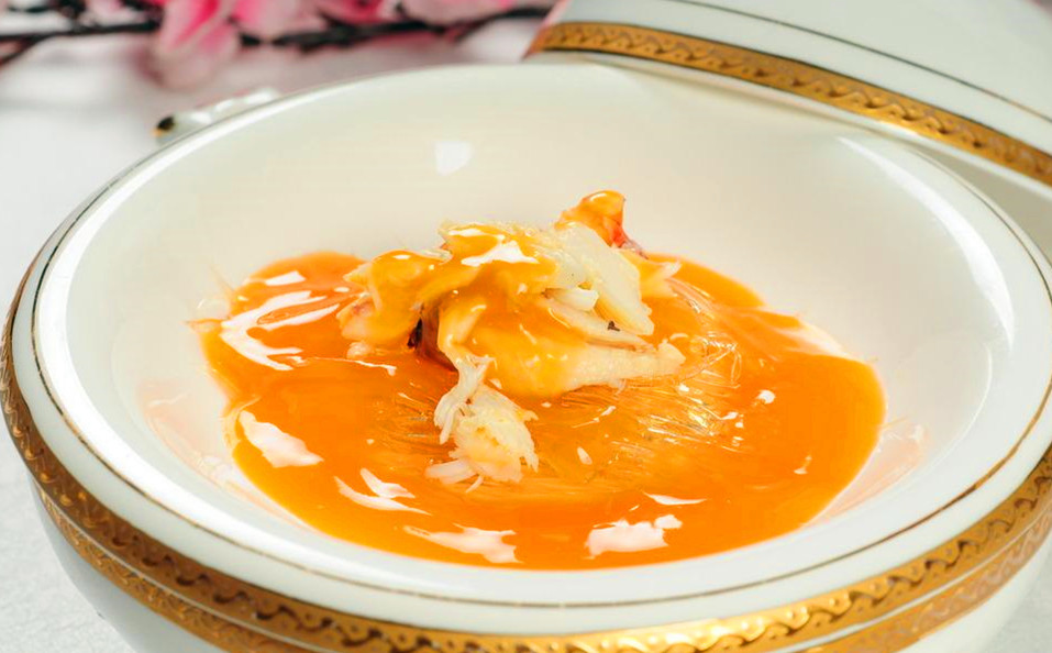 图 3-4-5 生拆蟹肉烩海虎翅 Fig. 3-4-5 braised sea tiger wings with raw and disassembled crab meat