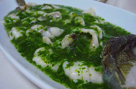 图 3-4-4 莼菜鲈鱼烩 Fig. 3-4-4 braised sea bass with Ulva