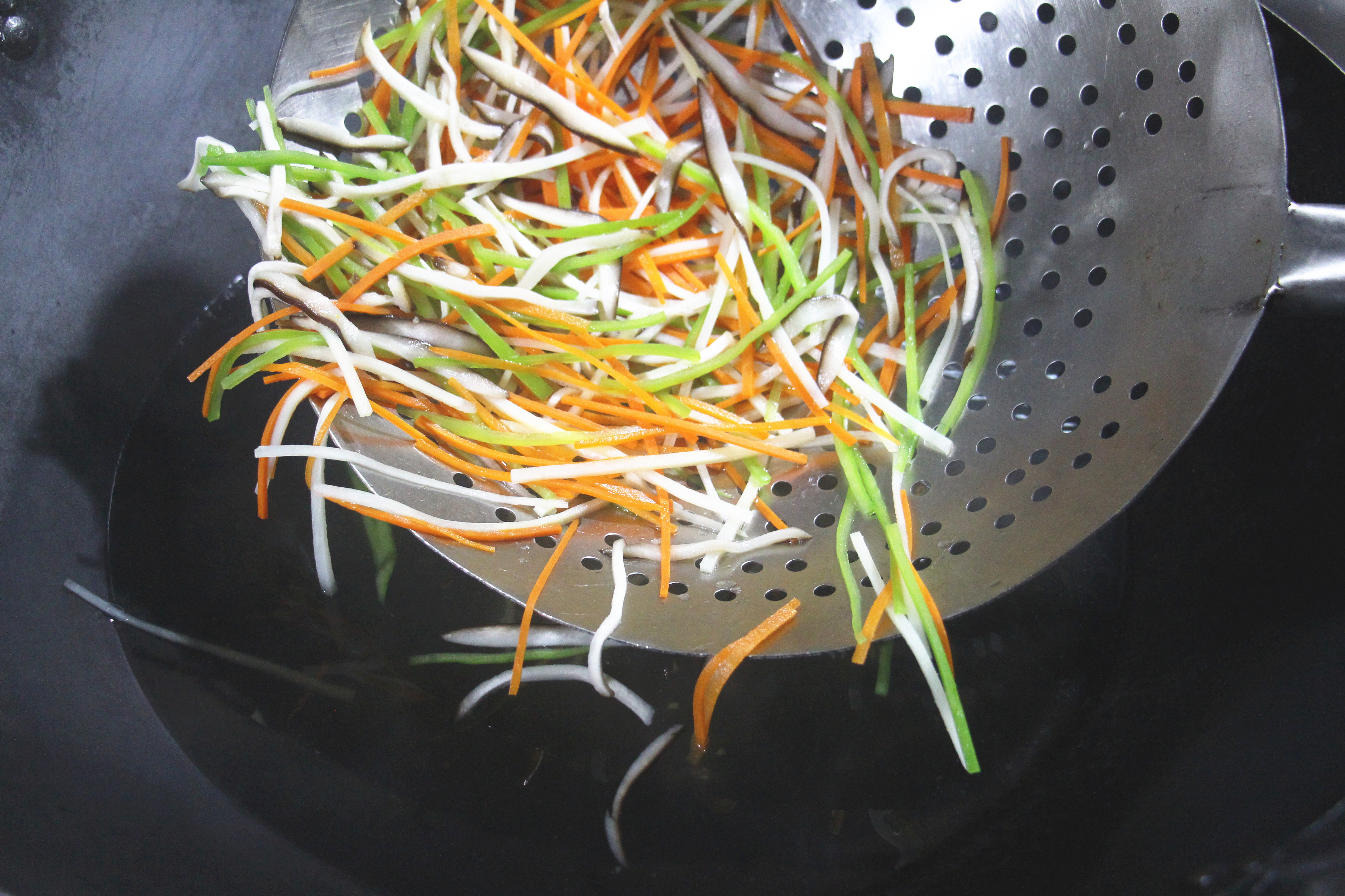 9.有些菜肴需要大油量时,油要分几次下入,这样才能保证菜肴既不吐油又香。