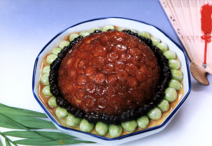 2. Be familiar with the two methods of steaming dishes. One is the original plate on the table, which is called the open fixed loading plate, which means that the raw materials are loaded in a certain form and order, and then steamed and served in the original utensils. Such as "Hibiscus egg" (see figure 4-1-1); The other is to change the plate and put it on the table, which is called concealed fixed plate. It refers to that the raw materials are orderly arranged in the buckle bowl according to a certain order, and then turned over and put it on the table in another container after steaming into dishes. Therefore, it is also called buckle bowl steaming method. Such as "fragrant bowl" (see figure 4-1-2).