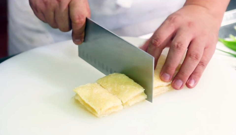 2. Knife handling. If the whole chicken, duck, goose and pigeon are used as the main ingredients, the whole bone needs to be removed; If the whole fish is used, the internal organs should be removed from the gills or mouth of the fish, in addition to scraping the scales and pulling the gills according to the conventional method; For melons, fruits and vegetables, first carve a circle under the pedicle with a knife, remove the part of the pedicle cover, and then dig out the inner flesh with the mouth of the spoon; If it is white gourd, towel gourd, eggplant, etc., cut it into blades; Auxiliary materials are generally processed into mud, powder, grain and other shapes.