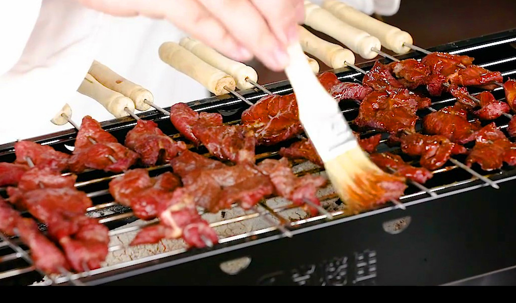 4.食物在烧烤过程中,时间越长,水分和油脂的流失越大,口感越干涩。因此在烤制过程中应在食物上适量刷些烧烤酱或食用油,可保持食物湿润度。