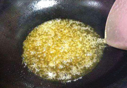 2.掌握好火候。如果蔗糖达到溶点温度时继续加热,当温度升至190℃至220℃时,蔗糖就会失水形成粘稠的黑褐色焦糖,使拔丝失败。