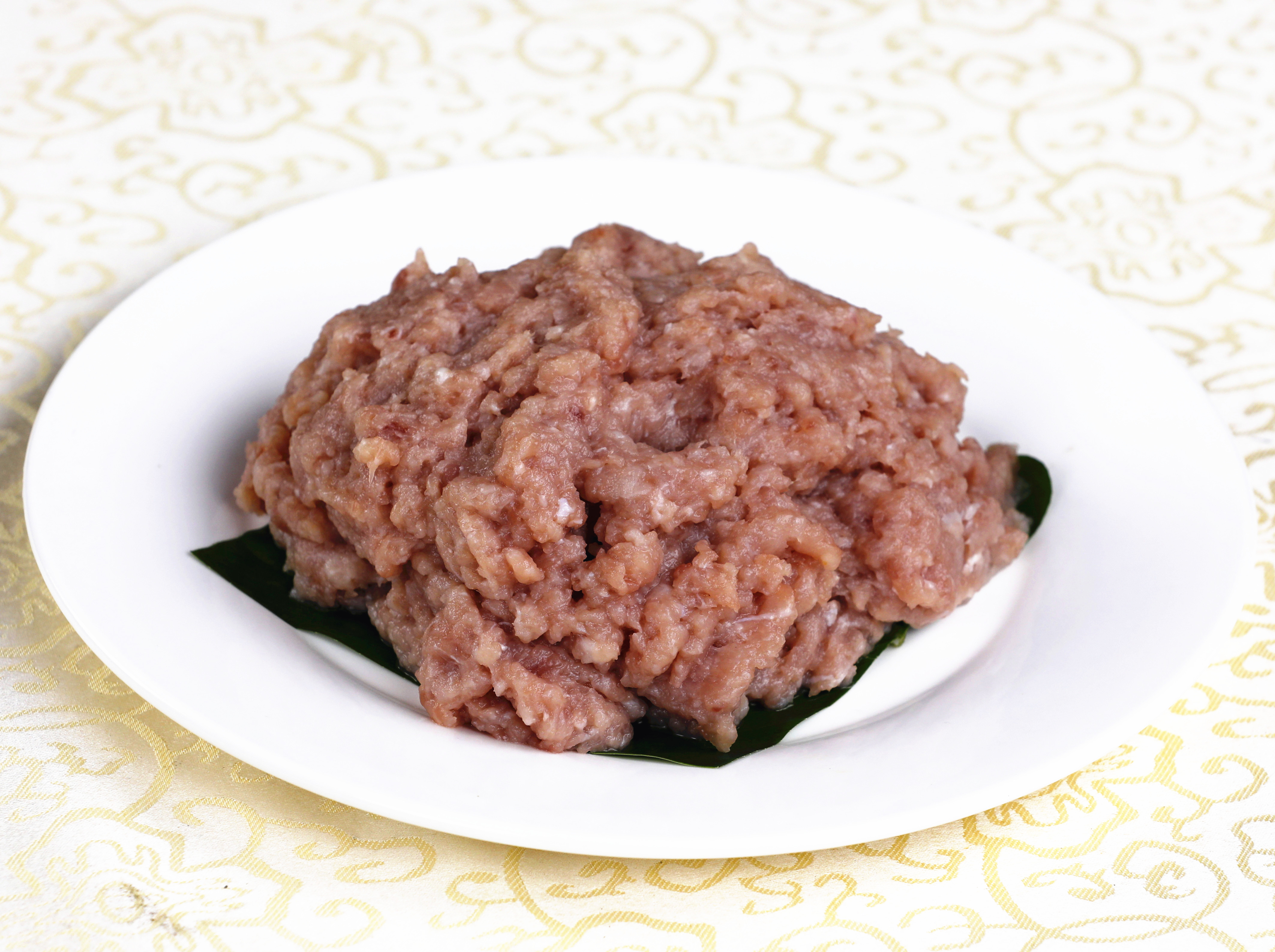 2.主料采用刀剁或用绞肉机加工成茸泥状。