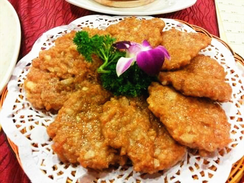 除以上常见的扒制技法外,还有一种较为特殊的扒制方法——铁扒。它吸取了西餐的烹制技法。一般是先将净肉类剁成茸泥状,加调料拌匀做成薄饼,放入锅中煎或热油中炸至外表金黄,捞起沥干油,摆放在碟中,浇淋上酱汁或搭配上味碟,这种加工加热调味工序,行业里习惯称之为铁扒。