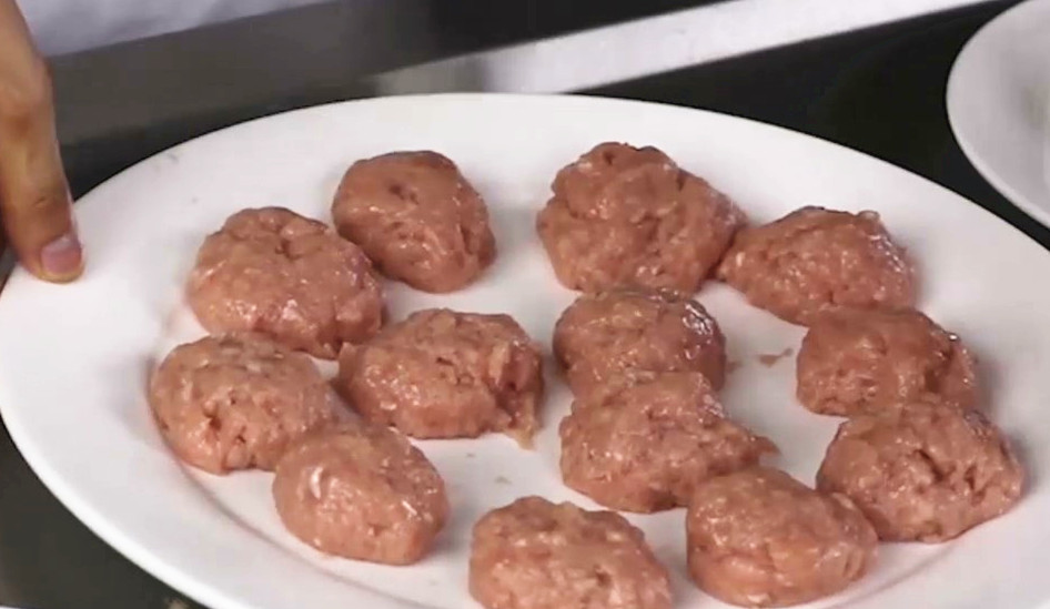3. Properly select all kinds of seasonings for seasoning, and make pancake meat patties with the same size and thickness after vigorous beating.