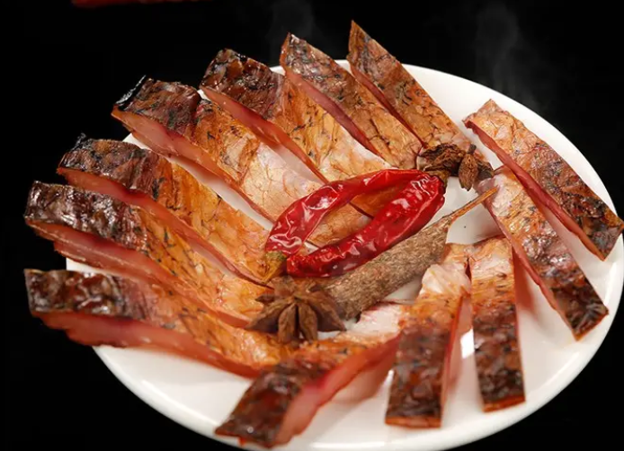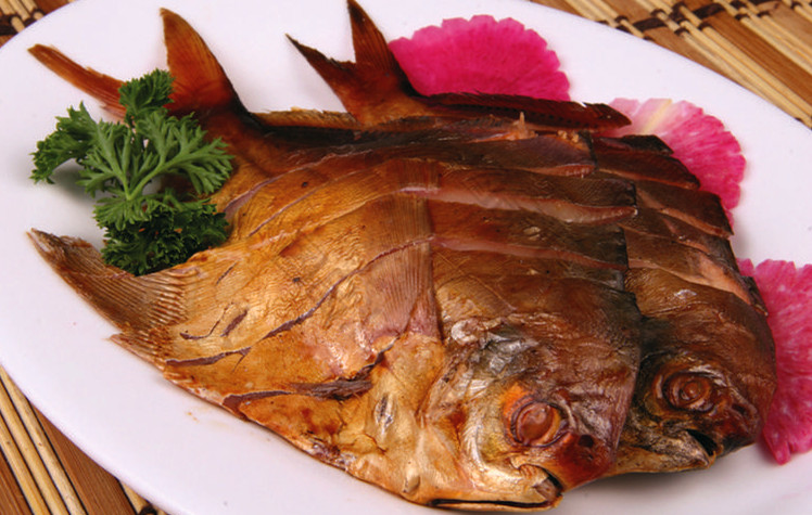 Anhui cuisine "Wuwei smoked duck" (see figure 6-8-1), "raw smoked chicken", Ningbo cuisine "smoked yellow croaker", Sichuan cuisine "smoked bacon", "Zhangcha duck", Hunan cuisine "Anhua Bacon", "Xiangxi Bacon", Jiangxi cuisine "Pingxiang Bacon", Guangdong cuisine "smoked pomfret" (see figure 6-8-2), "tea flavored chicken", Guangxi cuisine "Yao smoked bacon" Smoked flavor chicken, etc.