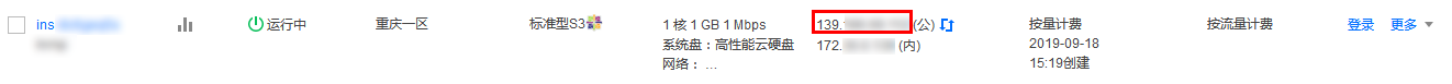 在实例的管理页面,找到待验证的云服务器实例,并记录该云服务器实例的公网 IP。如下图所示: