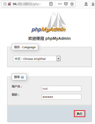 在浏览器中访问以下地址,进入 phpMyAdmin 管理平台。