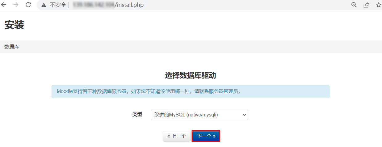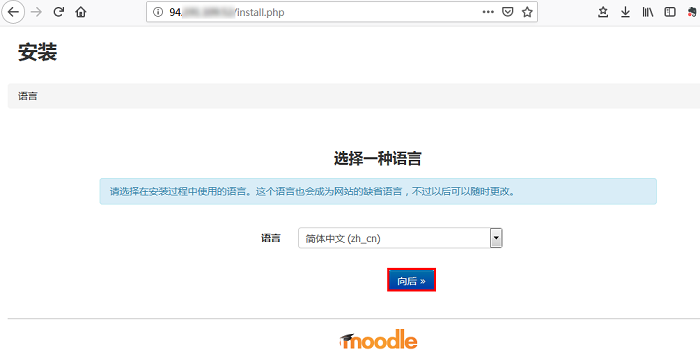 在本地浏览器中访问该云服务器实例的公网 IP,进入 Moodle 安装页面。