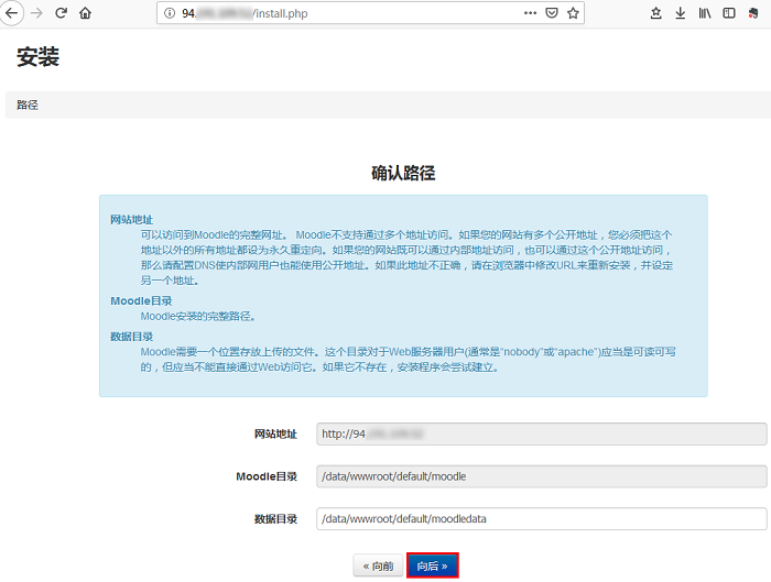 步骤4:安装配置 Moodle