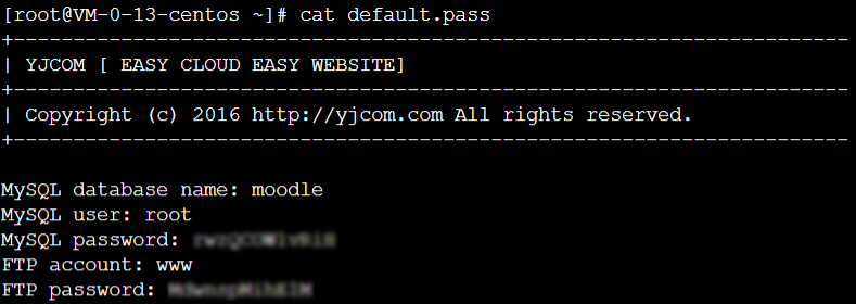 执行以下命令,获取数据库相关帐号及密码。