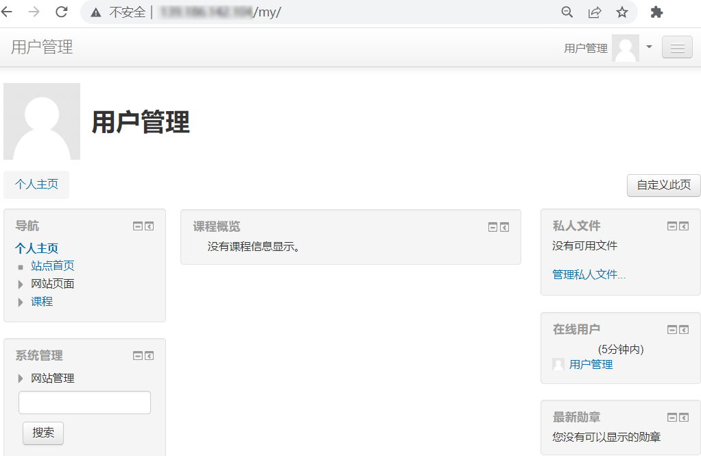 您已成功搭建 Moodle 在线学习系统,可根据您的实际需求进行网站管理及个性化设置。
