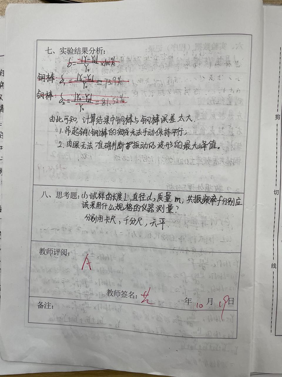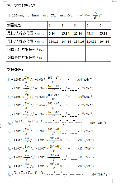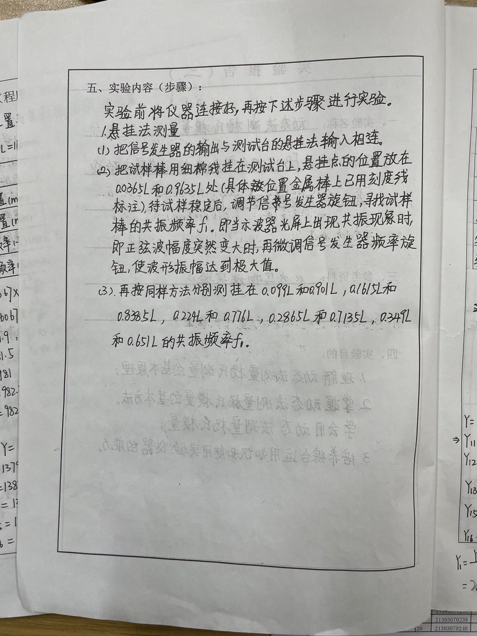 (3)再按同样方法分别测挂在0.099L和0.901L,0.1615L和0.8385L,0.224L和0.776L,0.2865L和0.7135L,0.349L和0.651L的共振频率。