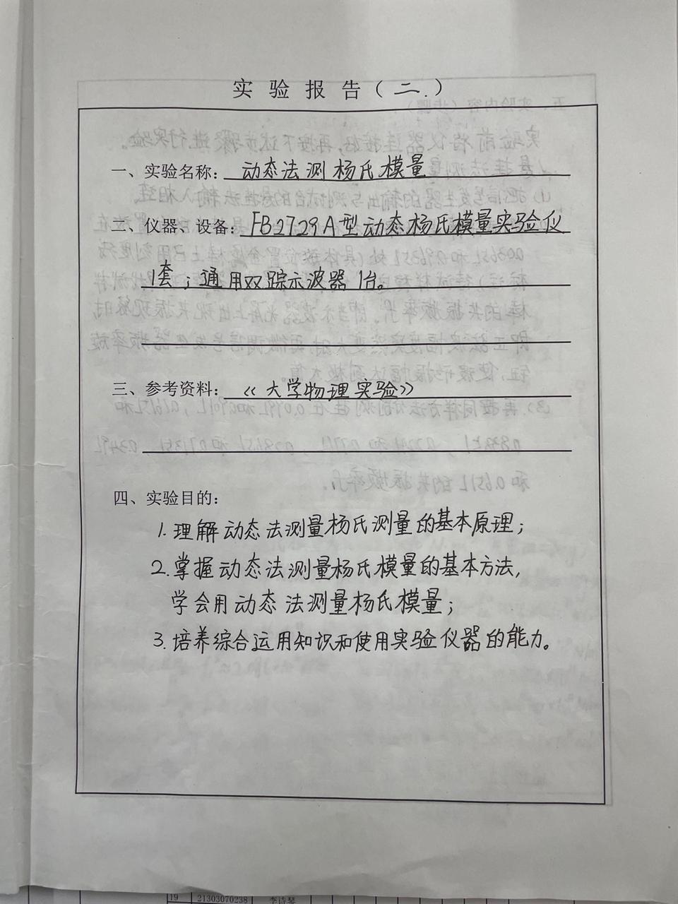 2、掌握动态法测量杨氏模量的基本方法,学会用动态法测量杨氏模量。