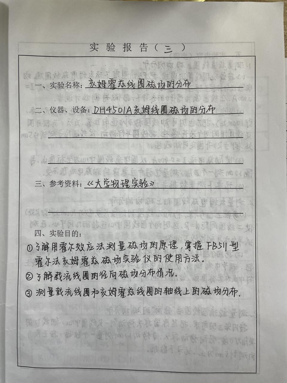 1.测量载流圆线圈轴线上磁场的分布