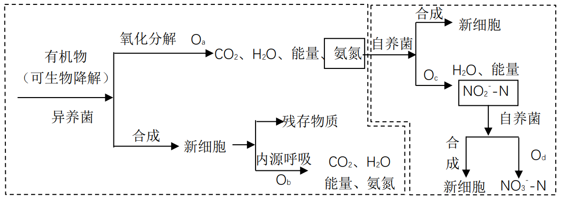)。在对废水进行生化法处理时,氨氮不仅能够向微生物提供营养,而且能够对废水的pH值起缓冲作用。总氮和凯氏氮之差值约等于硝态氮的量,凯氏氮与氨氮之差值约等于有机氮的量。你能根据上述文字对含氮物质在水中不同形式之间的关系进行梳理吗?
