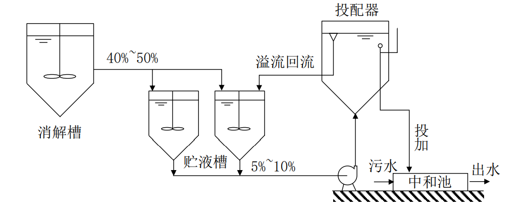 投到中和池的石灰乳与池内酸性废水在搅拌下进行混合反应,污水停留时间一般为5~20min。与干投法相比,湿投法反应迅速、彻底,投药量少,但需要的设备多,维护工作量相对较大。
