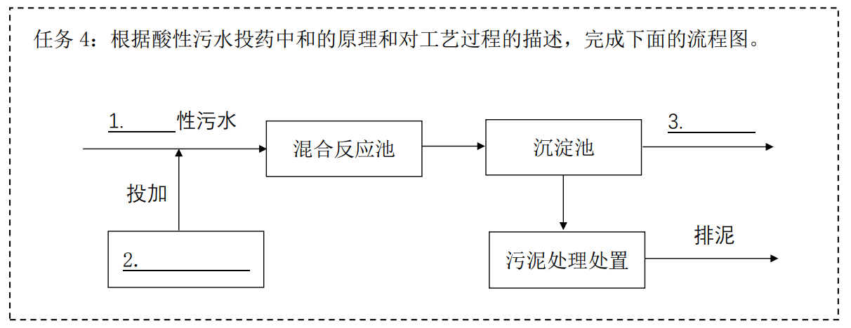 根据酸性污水投药中和工艺原理和过程,完成流程图填空。