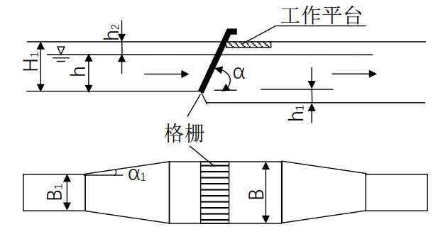 人工清理格栅的放置形式和结构如图3-1所示。其中各项尺寸参数含义如下:
