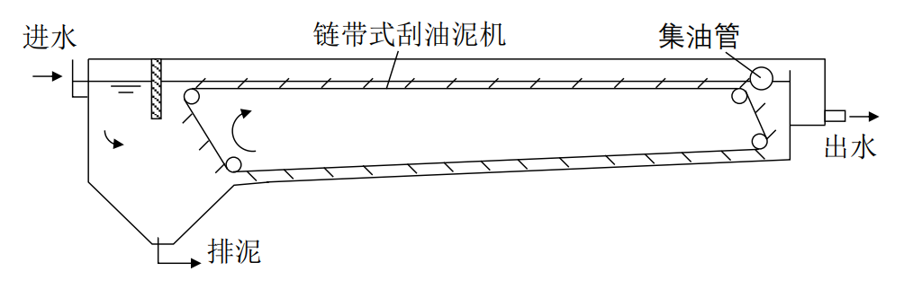 污泥区用于暂时贮存和排出污泥,在沉淀池前端设有泥斗,其他部分池底有0.01~0.02的坡度,便于污泥落入泥斗。污泥在泥斗内通过排泥管排出,排泥方式分为重力排泥和机械排泥,重力排泥需要静水压力大于1.5m,较深的构筑物污泥所受的静水压力越大,重力排泥越容易。刮泥车往复运动,通过将坡底污泥刮入泥斗辅助污泥的收集。通过设置多个泥斗,也可以不采用刮泥车。